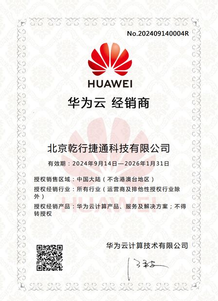 Πρότυπο:Huawei cloud elite service provider Αριθμός:202409140004R Ημερομηνία Έκδοσης:2024-09-14 Ημερομηνία λήξης:2026-01-30 Πεδίο εφαρμογής / Range:Sales of computer Που εκδίδονται από:HUAWEI |